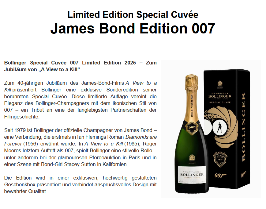 Champagner Bollinger Special Cuvee Brut James Bond Edition 2025