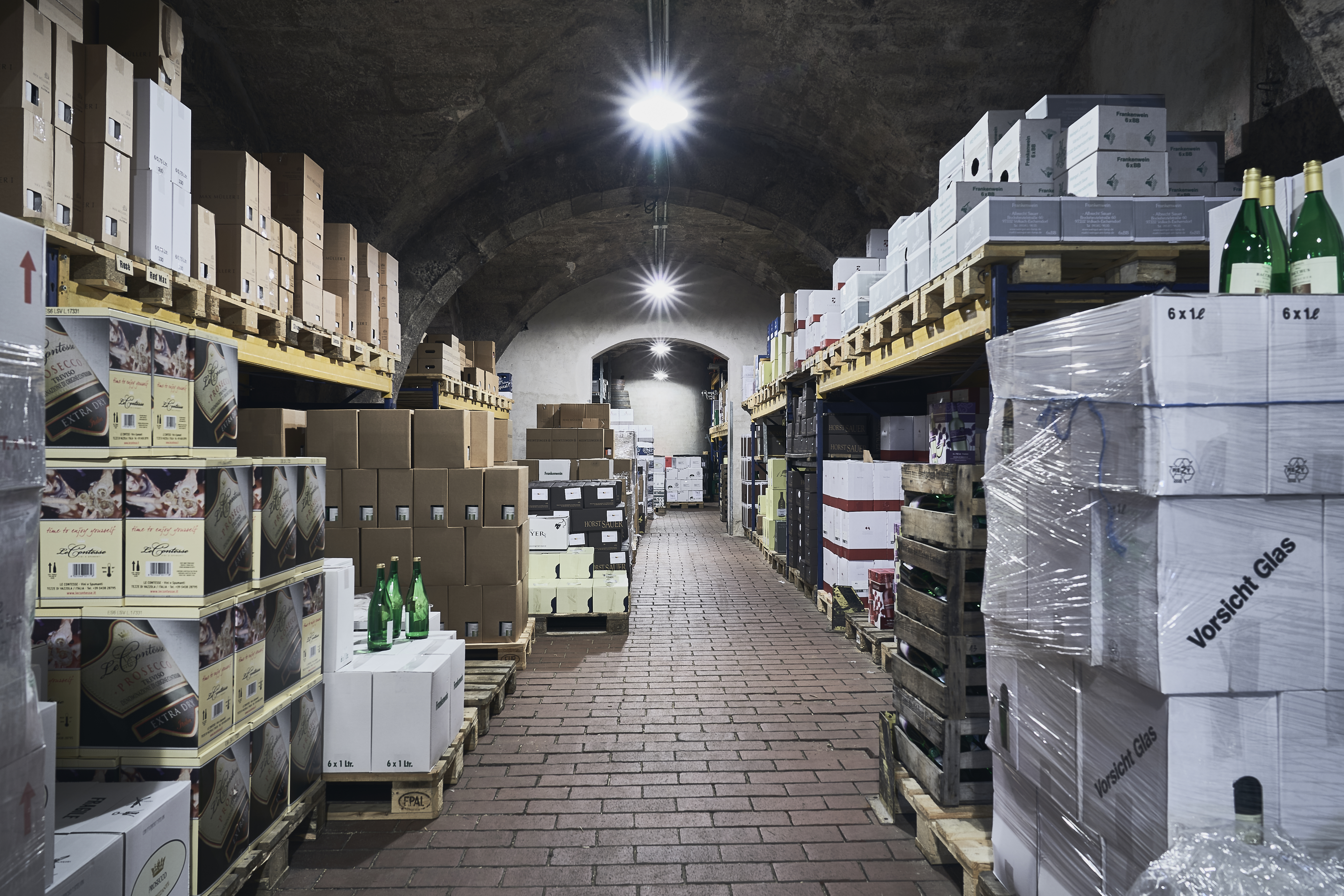 Die nächste bedeutsame Zäsur in der Firmen-Genealogie war - nach einer vorübergehenden Anmietung der Keller in der fürstlichen "Ehrenburg" - im Oktober 1898 der Abschluß eines Pachtvertrages mit der herzoglichen Domänenverwaltung für das ehemalige Coburger Zeughaus. Wo einst Harnische und Waffen aufbewahrt wurden, fanden jetzt Weine aus Deutschland und dem "Rest" der Welt ihr stilvolles Domizil - überwölbt von den mächtigen Pfeilern eines trockenen Naturkellers. Hier, sechs Meter "unter Tage", herrscht zum Wohle aller guten Keller-Geister auch sommers eine gleichbleibende Temperatur zwischen 12 und 14 Grad Celsius.